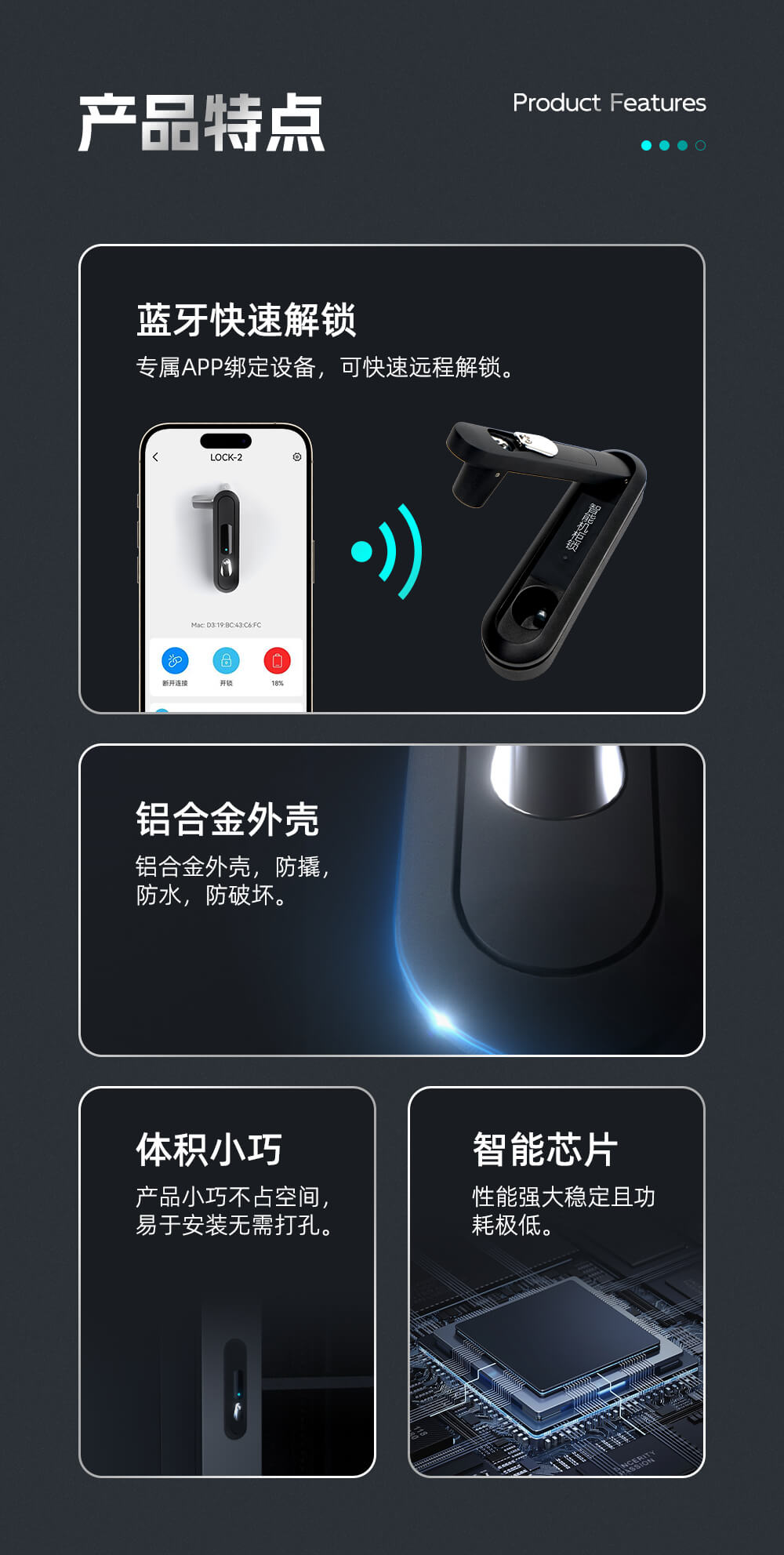 1.便捷高效:通過藍牙連接,用戶可以通過智能手機APP隨時隨地以無線方式打開機柜鎖,不需要攜帶額外的物理鑰匙,簡單方便。